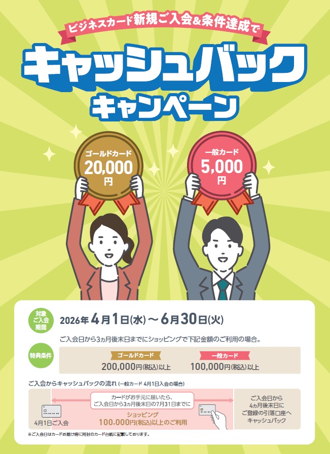 ビジネスカード新規ご入会&条件達成でキャッシュバックキャンペーン!